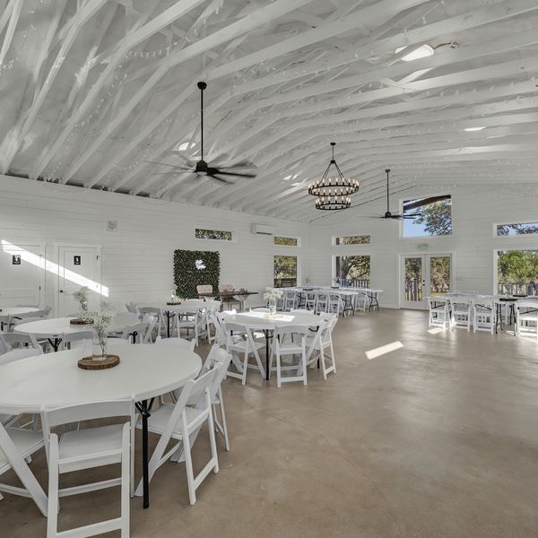The venue features the historic "Casa," an old lake house thoughtfully renovated for the bridal party and their immediate family to gather, prepare, and enjoy the day together. Surrounded by picturesque views, mature oaks, and a sprawling multi-acre pasture, The Casa offers the perfect backdrop for your celebration.